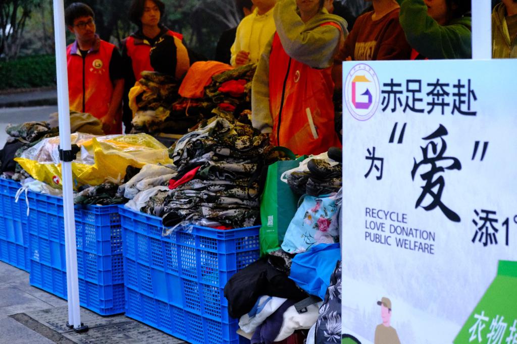 本次活动共有近300名师生参与,获捐衣物900余件,这些衣物承载着老师同学们的爱心,将通过义乌慈善总会爱心衣物转运站发往有需要的地方。
